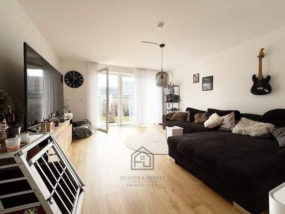Mehr zum Angebot F&D | Moderne 3-Zimmer-EG-Wohnung mit EBK, Südterrasse und Garten in ruhiger Lage: